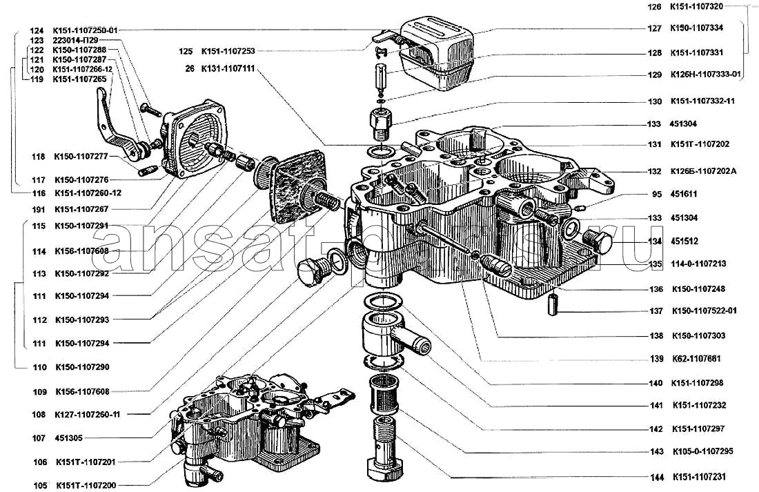 | 105 | К151Т-1107200 | Корпус поплавковой камеры в сборе | Нет в продаже |